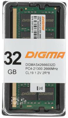 Память DDR4 32Gb 2666MHz Digma DGMAS42666032D RTL PC4-21300 CL19 SO-DIMM 260-pin 1.2В dual rank