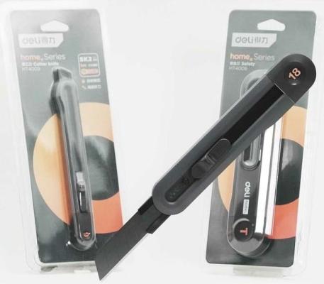 Технический нож "Home Series Black" Deli HT4018 Ширина лезвия 18мм. Эксклюзивный дизайн. Корпус из высококачественного софттач пластика