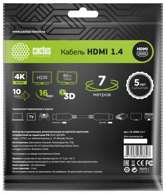 Кабель аудио-видео Cactus CS-HDMI.1.4-7 HDMI (m)/HDMI (m) 7м. Позолоченные контакты черный