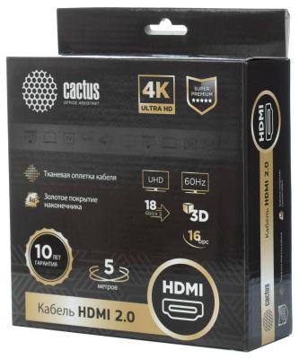 Кабель аудио-видео Cactus CS-HDMI.2-5 HDMI (m)/HDMI (m) 5м. Позолоченные контакты черный