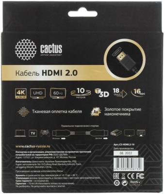Кабель HDMI 10м Cactus CS-HDMI.2-10 круглый черный