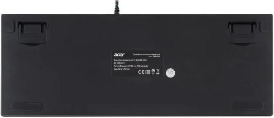 Дополнительно *Клавиатура Acer OKW126 (ZL.KBDEE.00G) механического типа характеризуется мягким плавным ходом и отсутствием сопротивления, что позволяет не до конца утапливать кнопки. Это снижает усталость кистей при длительном наборе текста или во время активных игр. Устройство выдерживает большое количество нажатий, благодаря чему обеспечивается оптимальный срок службы. Подсветка позволяет удобно использовать клавиатуру в условиях недостаточной видимости.