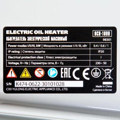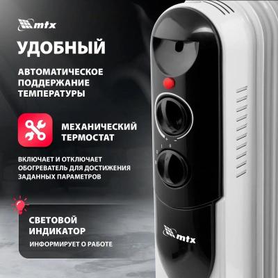 Масляный обогреватель MTX och-1000, 230 в, 1000 вт 98301 имеет 3 режима работы - можно установить мощность нагрева 400, 600 и 1000 Вт в зависимости от площади помещения.