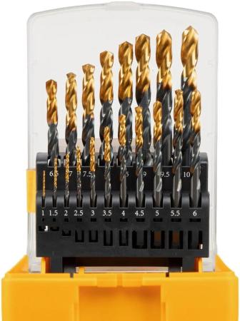 Набор сверл по металлу, 1-10 мм, HSS-Tin, Golden Tip, 19 шт// Denzel