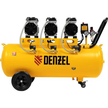 Компрессор безмаслянный малошумный DLS 1800/100,1800 Вт, 3х600, 100 л, 345 л/мин// Denzel