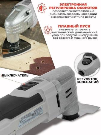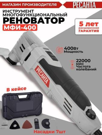 Прочие особенности и свойстваМногофункциональный инструмент-реноватор Ресанта МФИ-400 в кейсе 75/4/2 предназначен для выполнения различных работ: распиливания и разрезания древесных материалов, пластмассы, гипса, цветных металлов, плитки, сухого шлифования и полирования небольших поверхностей, удаления остатков клея, штукатурки, бетона, лакокрасочного покрытия.