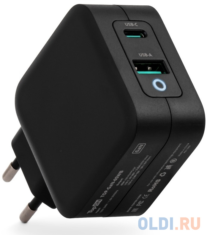 Сетевое зарядное устройство TopON GaN 65W USB + Type-C черный