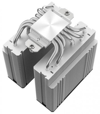 Прочие особенности и свойстваID-Cooling SE-206-XT - процессорный охладитель с показателем TDP до 250 Вт. Кулер выполнен в формате башни с двухсекционным радиатором и двумя 120-миллиметровыми вентиляторами. Последние вращаются со скоростью от 700 до 1800 оборотов в минуту, а управление осуществляется методом широтно-импульсной модуляции (ШИМ). Каждый из вентиляторов формирует поток воздуха объёмом до 76.16 кубических метров в час. Максимальный уровень шума — 35,2 дБА. Статическое давление достигает 2,16 мм водного столба. Алюминиевый радиатор пронизывают шесть медных тепловых трубок диаметром 6 мм с непосредственным контактом с крышкой процессора. Общие габариты охладителя составляют 136 ? 120 ? 156 мм, вес — 1100 г.