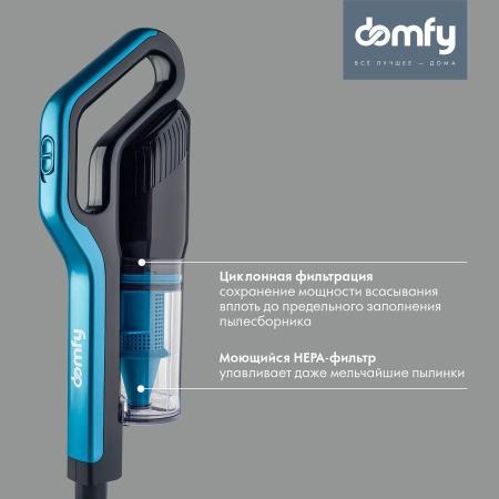 Прочие особенности и свойстваВертикальный ручной пылесос с циклонным фильтром Domfy DSC-VC305 мощностью 1000 Вт превратит уборку в удовольствие. Он одинаково хорошо подходит для эффективного удаления пыли с ковролина, ламината, линолеума и других напольных покрытий, а также для чистки мебели. Многоразовый фильтрующий элемент и быстросъемный контейнер для мусора существенно упрощают процесс эксплуатации и позволяют сэкономить на расходниках.