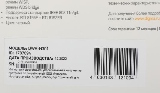 Дополнительная информацияDigma DWR-N301 – надежный домашний Wi-Fi-роутер с простой и быстрой настройкой.