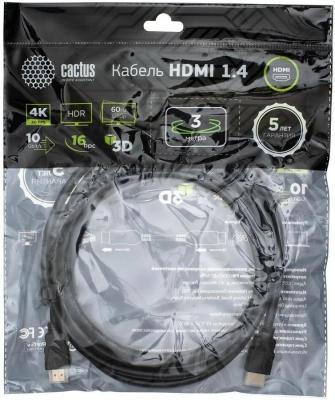 Кабель HDMI 3м Cactus CS-HDMI.1.4-3 круглый черный
