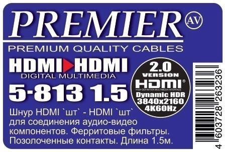 Кабель соединительный аудио-видео PREMIER 5-813, HDMI (m) - HDMI (m) , ver 1.4, 1.5м, ф/фильтр, черный [5-813 1.5]