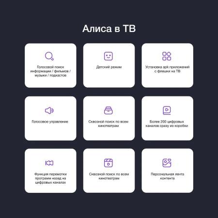Благодаря системе «Яндекс.ТВ» навигация по доступному контенту ещё никогда не была такой удобной. Достаточно нажатия всего одной кнопки, чтобы виртуальный ассистент Алиса начала выполнять голосовые команды. Она может не только искать нужные фильмы и сериалы, щёлкать каналы, но умеет совершать и много других полезных действий.
