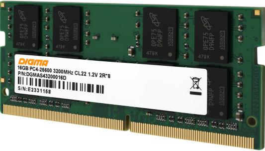 Память DDR4 16Gb 3200MHz Digma DGMAS43200016D RTL PC4-25600 CL22 SO-DIMM 260-pin 1.2В dual rank Ret