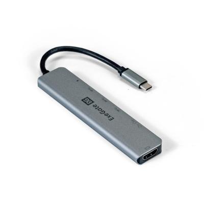 Док-станция ExeGate DUB-21C/PD/CR/H (кабель-адаптер USB Type-C --> 2xUSB3.0 + Card Reader + PD 100W + HDMI 4K@60Hz, Plug&Play, серый)