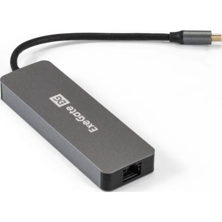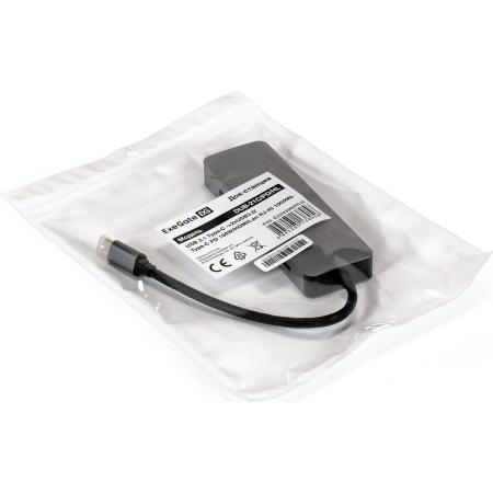 Док-станция ExeGate DUB-21C/PD/HL (кабель-адаптер USB Type-C --> 2xUSB3.0 + PD 100W + HDMI 4K@60Hz + Lan RJ45 10/100/1000Mb, Plug&Play, серая)