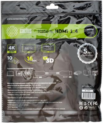 Кабель аудио-видео Cactus CS-HDMI.1.4-1, HDMI (m) - HDMI (m) , ver 1.4, 1м, GOLD, черный