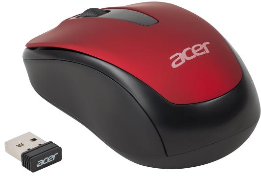 Мышь Acer OMR136, оптическая, беспроводная, USB, красный [zl.mceee.01j]