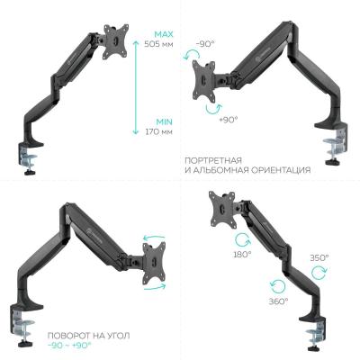 Кронштейн для мониторов ONKRON G100, до 32", до 9кг, настольный, поворот и наклон верт.перемещ., белый