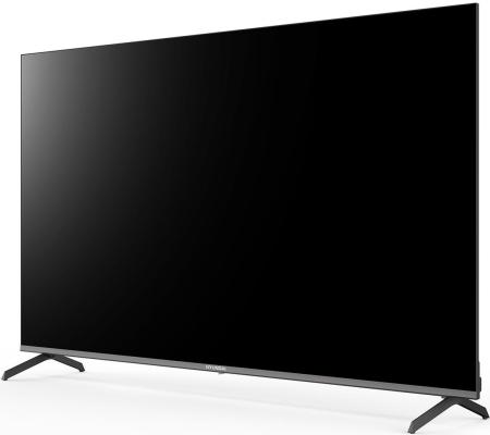 Функционал SMART TV, поддерживаемый прибором, и операционная система Android TV 11, на которой он работает, обеспечивают быструю загрузку онлайн-контента в потоковом режиме. Устройство посредством Wi-Fi или кабеля Ethernet подключается к Интернету и проигрывает медиаконтент со стриминговых площадок. Кроме того, в девайс интегрирован Chromecast, обеспечивающий синхронизацию со смартфоном через Bluetooth, для дальнейшей трансляции контента напрямую с телефона на экран.