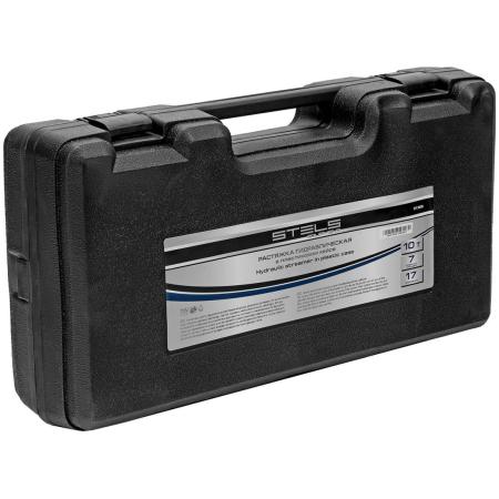 Растяжка гидравлическая, 10 т, набор из 17 предметов, 7 сменных насадок, в пласт. кейсе// Stels
