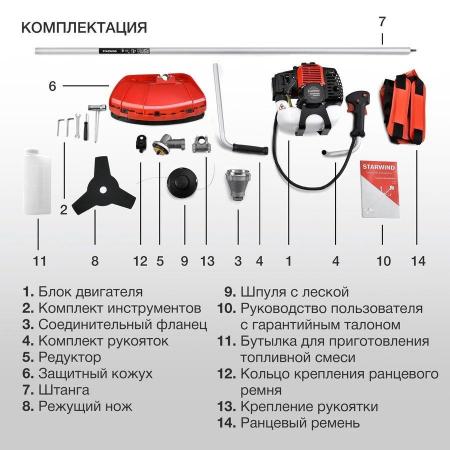 Прочие особенности и свойстваДобейтесь идеального вида вашего участка с помощью бензинового триммера Starwind GT-52. Этот надежный и мощный инструмент предоставит вам все, что необходимо для легкого и эффективного скашивания травы и растительности на вашем участке.