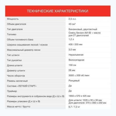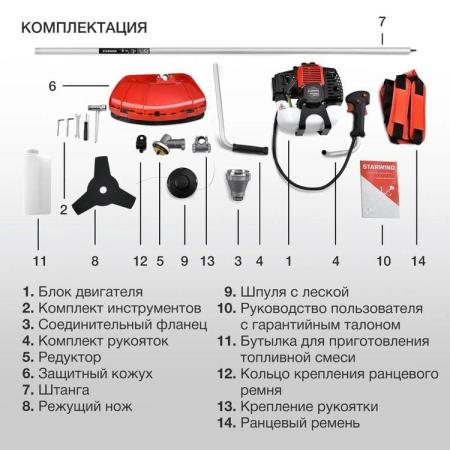 Триммер бензиновый Starwind GT-43 1Вт 2.5л.с. неразбор.штан. реж.эл.:леска/нож