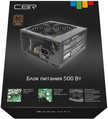 Блок Питания CBR ATX 500W 80+ Bronze, APFC, 0.6mm, 20+4pin, 1*8-pin(4+4P), 2*6+2pin, 4*SATA, 4*IDE, 12cm fan, 1.5м кабель питания, черный [PSU-ATX500-12GM]