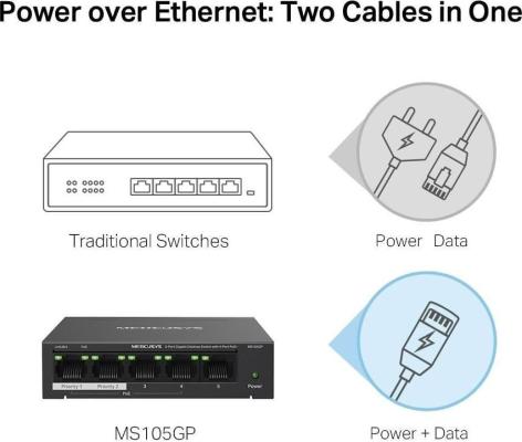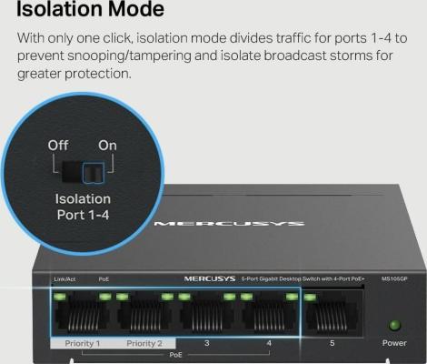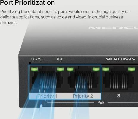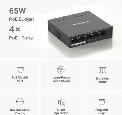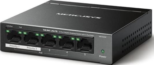 Mercusys MS105GP Настольный коммутатор с 5 гигабитными портами (4 порта PoE+)