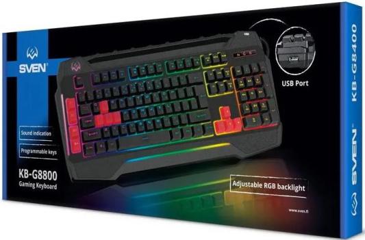 Игровая клавиатура SVEN KB-G8800 черная (USB, мембранная, 109 клавиш, RGB подсветка)