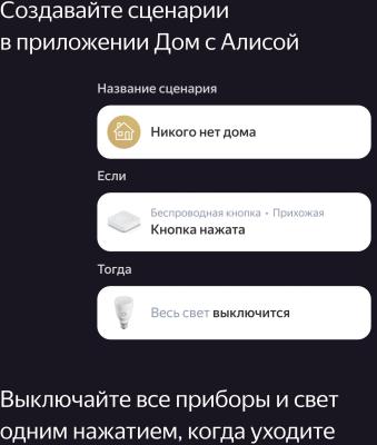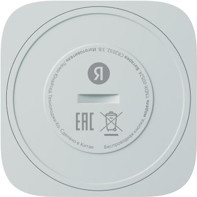Яндекс YNDX-00524 в компактном белом корпусе идет в комплекте со стикером для монтажа на любую поверхность. Устройство работает от батарейки CR2032 с напряжением 3 В. Кнопка подходит для установки в помещении или на улице, сохраняет работоспособность при температуре от -10 °C до +55 °C и влажности в пределах 5-95%.