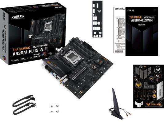 Материнская плата Asus TUF GAMING A620M-PLUS WIFI SocketAM5 AMD A620 4xDDR5 mATX AC`97 8ch(7.1) 2.5Gg RAID+HDMI+DP