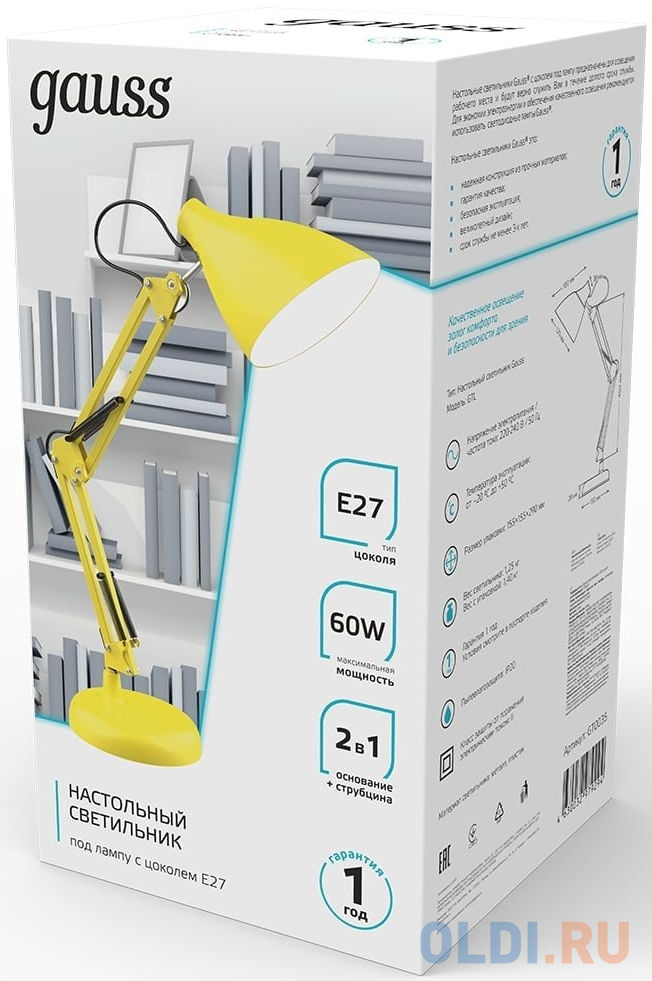 Светильник Gauss GT0035 настольный на струбцине / основание E27 желтый 60Вт![]()