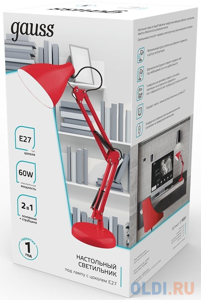 Светильник Gauss GT0034 настольный на струбцине / основание E27 красный 60Вт![]()