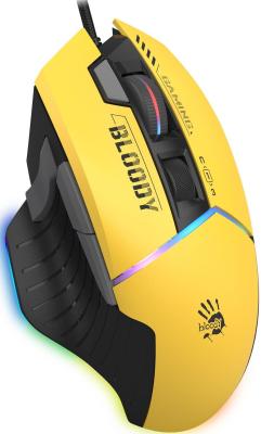Мышь A4TECH Bloody W95 Max Sports, игровая, оптическая, проводная, USB, желтый и серый [w95 max sports lime]