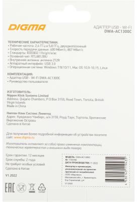 Сетевой адаптер Wi-Fi Digma DWA-AC1300C AC1300 USB 3.0 (ант.внутр.) 1ант. (упак.:1шт)