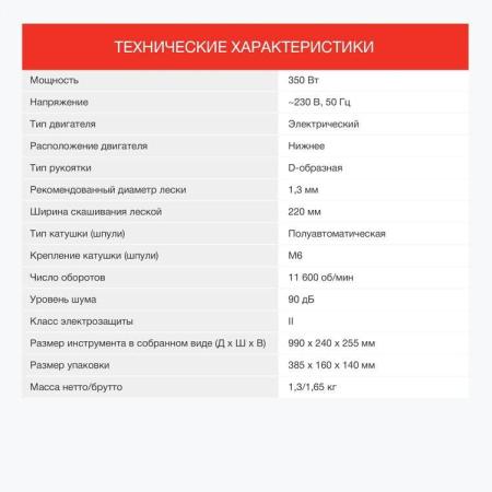 Триммер электрический Starwind ET-350 350Вт неразбор.штан. реж.эл.:леска/нож упак.:1шт.