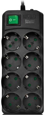 SVEN Фильтр SF-08E-16 3,0 м (8 розеток с защитными шторками,16А) черный, цветная коробка [SV-021610]