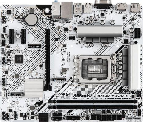 Материнская плата Asrock B760M-HDV/M.2 Soc-1700 Intel B760 2xDDR5 mATX AC`97 8ch(7.1) 2.5Gg RAID+VGA+HDMI+DP