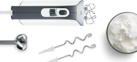 С этой моделью вы сможете легко справиться даже с самым сложным рецептом. Прорезиненная ручка позволяет комфортно держать инструмент в руках и избегает потовыделений. В комплекте есть три насадки, что позволит вам выбрать наиболее подходящую для конкретной задачи.