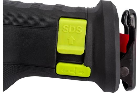 Конструкция сабельной пилы предусматривает антивибрационную систему и рукоятку с резиновым покрытием, что предотвращает выскальзывание инструмента в ходе работы и обеспечивает комфорт даже при длительной эксплуатации. Для большей безопасности, пила оснащена блокировкой от случайного запуска.