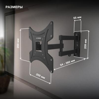 Кронштейн для телевизора Hyundai GL-N2 черный 20"-48" макс.15кг настенный поворотно-выдвижной и наклонный