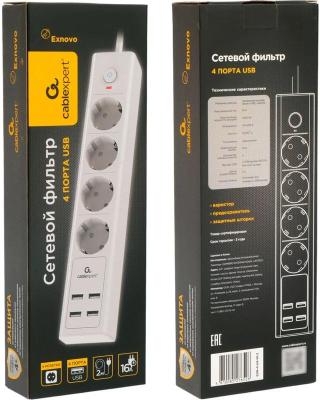 Сетевой фильтр Cablexpert Exnovo EXN-4-U4-W-2 2м. белый 4 розетки 4xUSB