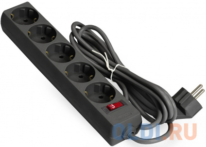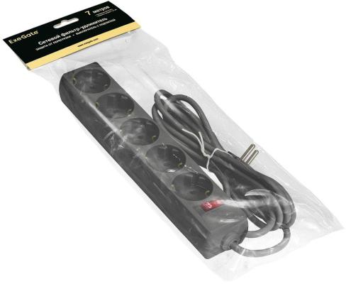 Сетевой фильтр ExeGate SP-5-7B (5 евророзетки с заземлением, 7м, защита от перегрузки, выключатель с подсветкой, черный)