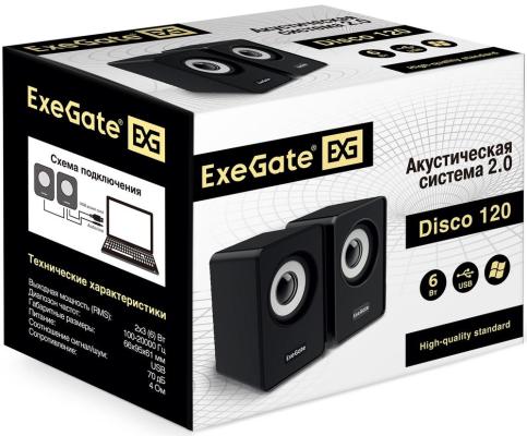 Акустическая система 2.0 ExeGate Disco 120 (питание USB, 2х3Вт (6Вт RMS), 100-20000Гц, черный, Color Box)
