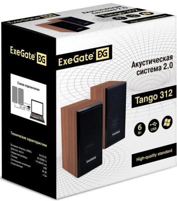 Акустическая система 2.0 ExeGate Tango 312 (питание USB, 2х3Вт (6 Вт RMS), 80-20000Гц, темное дерево, Color Box)