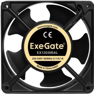 Вентилятор 220В AC ExeGate EX12038BAL (120x120x38 мм, 2-Ball (двойной шарикоподшипник, алюминиевый корпус, подводящий провод 30 см, 2700RPM, 42dBA, RTL)