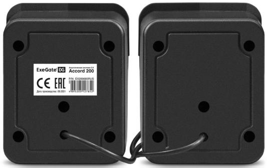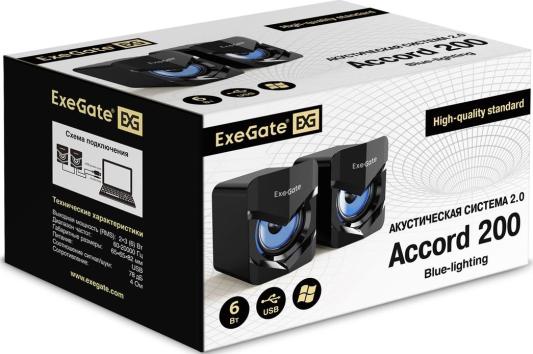 Акустическая система 2.0 ExeGate Accord 200 (питание USB, 2х3Вт (6Вт RMS), 60-20000Гц,цвет черный, синяя подсветка, Color Box)