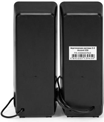 Акустическая система 2.0 ExeGate Accord 235 (Активная, питание 220В, 2х3Вт, 30-18000Гц, цвет черный, дерево, разъем для наушников, Color Box)