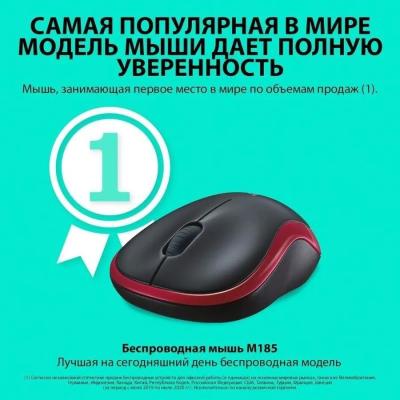 Мышь Logitech M185 черный/красный оптическая (1000dpi) беспроводная USB1.1 для ноутбука (2but)